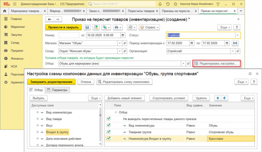 1С:Розница: маркировка остатков обуви