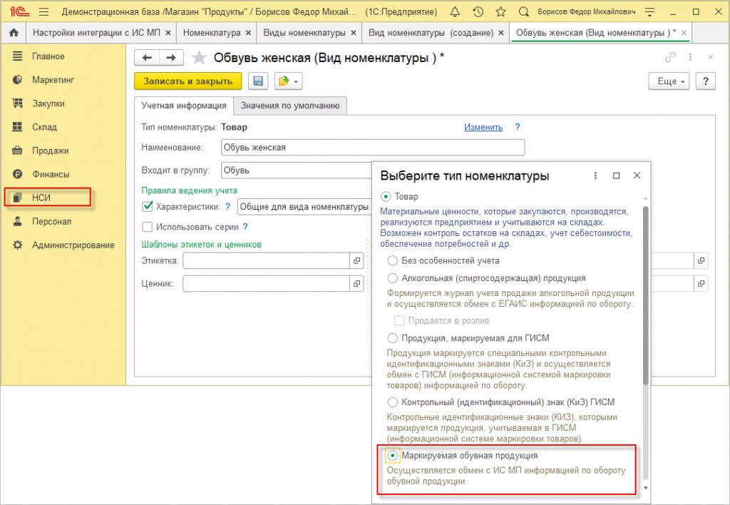 В программу нужно ввести сведения о том, что оставшаяся обувь промаркирована. С этой целью каждая номенклатура обуви должна получить статус маркируемой обувной продукции.