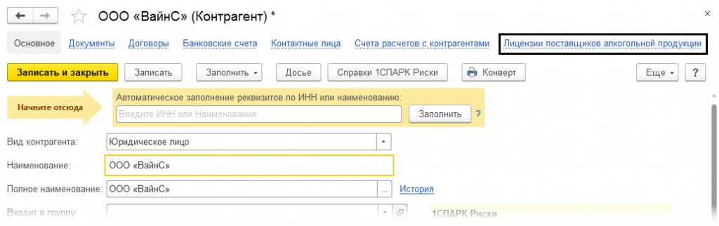 Когда необходимо заполнять данные о поставщике, то важно обратить внимание на раздел «Лицензии поставщиков алкогольной продукции».