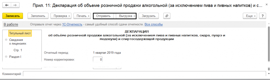 Сервис «1С-Отчетность» предоставляет простой инструмент для заполнения декларации, ее отправки в контролируемые органы или выгрузки на компьютер.