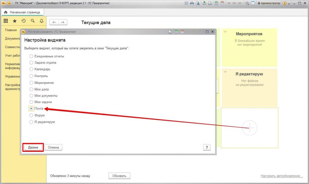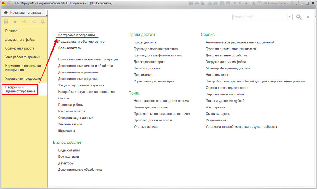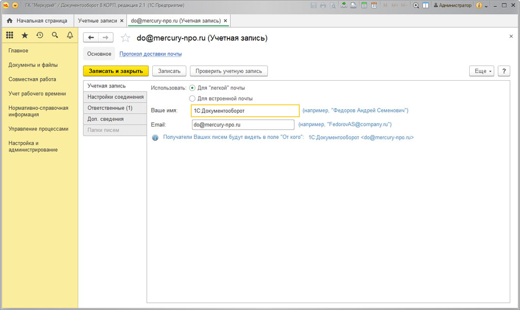 Настройка встроенной почты в 1С:Документооборот 8 КОРП