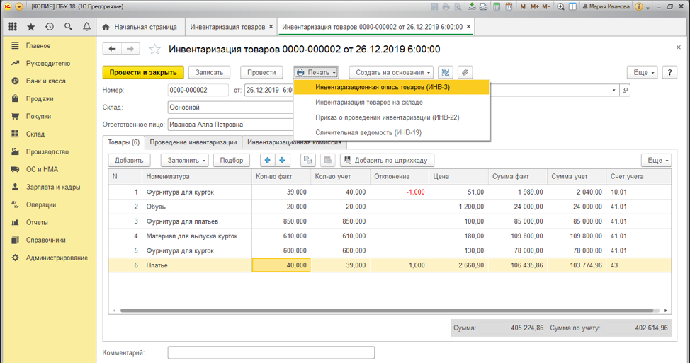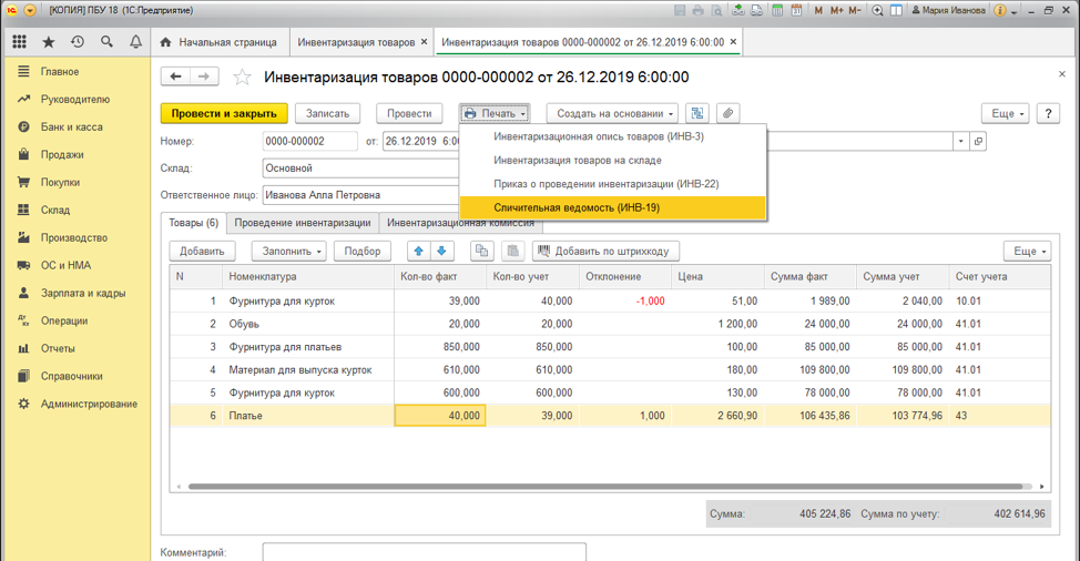 Но если в конце инвентаризации никаких расхождений не было обнаружено, то сличительная ведомость не понадобится — ее не формируют и не распечатывают. Что касается результатов всей процедуры, то их отдают руководителю, а он, в свою очередь, должен сделать выводы касательно отклонений в цифрах.