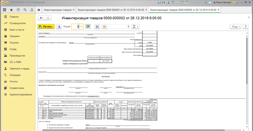 Когда приказ у вас будет готов, вам нужно его распечатать и издать. После сотрудники, работники, которые непосредственно будут участвовать в процессе инвентаризации, обязательно должны его увидеть и прочесть. Далее идет сама инвентаризация. Как ее правильно оформить в документах?