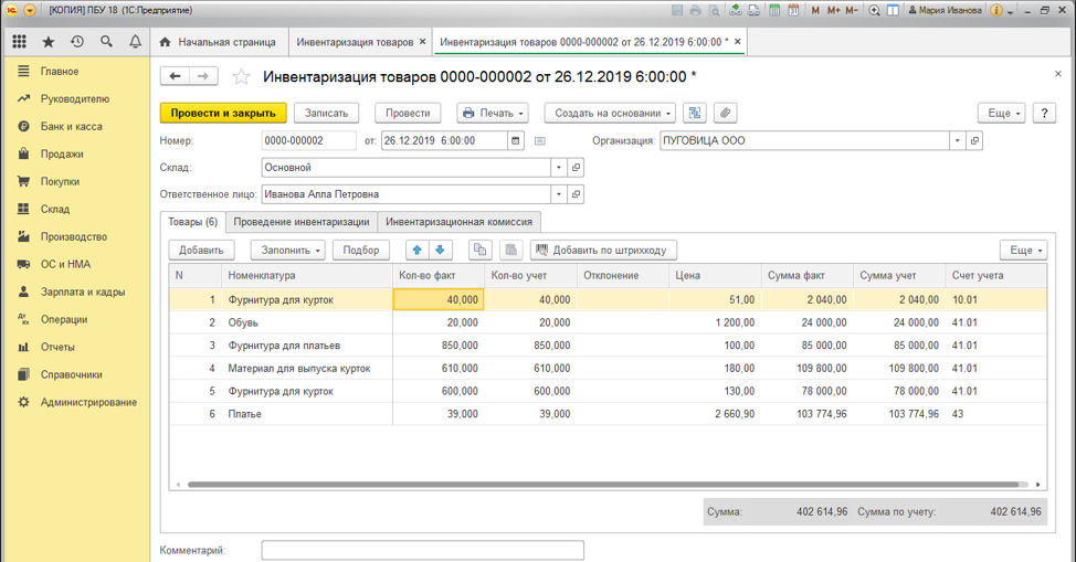 В недостачах могут быть виновные — их необходимо обнаружить. Излишки могут быть оприходованы. Если вдруг выявится пересортица вследствие недостачи или излишков, то руководитель должен принять решение засчитать однородные виды ТМЦ, которые находятся на сбережении у одного лица, который несет материальную ответственность.