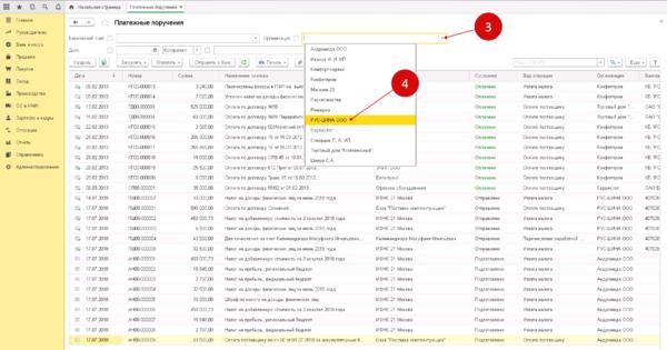 Далее в этом окне в столбце «Организация» следует выбрать ту организацию, по которой будет осуществлен обмен. Отобразится окно с перечнем всех платежек по этой организации.