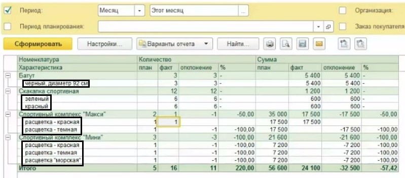 Как узнать, выполнен ли план по продажам по отдельным номенклатурам?