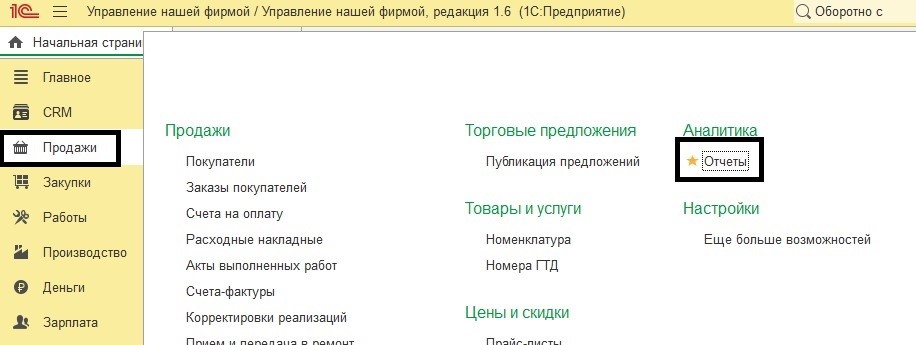 отчет по продажам в 1С УНФ