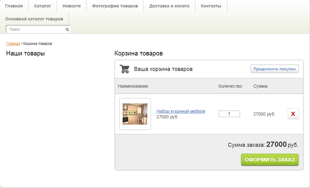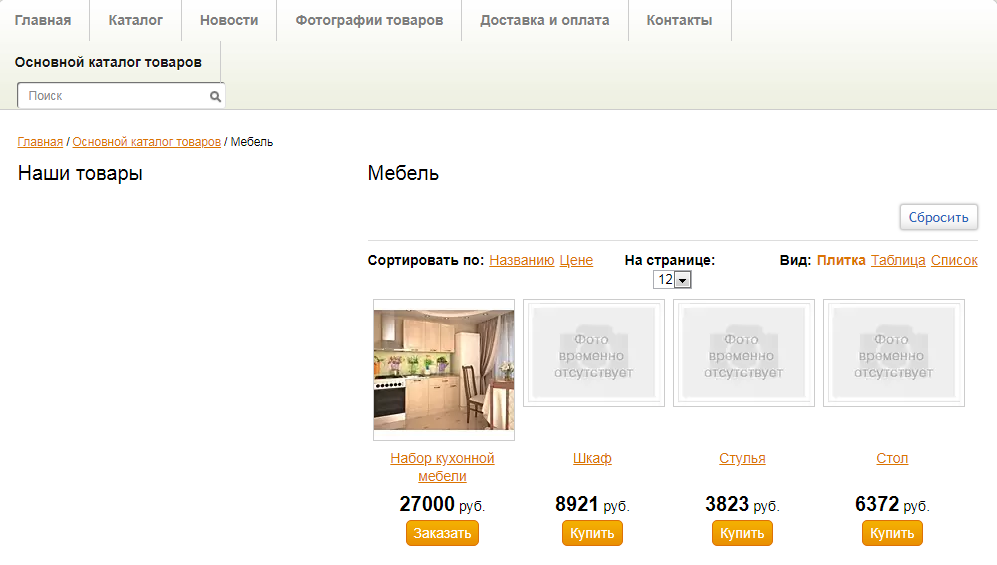Теперь можно зайти на сайт и проверить обновленную информацию. Каталог пополнится первой номенклатурой с наличием текстового описания и картинки.