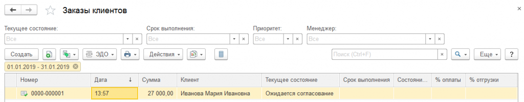 В журнале «Заказы клиентов» будет отображаться сформированный ранее заказ в интернет-магазине.