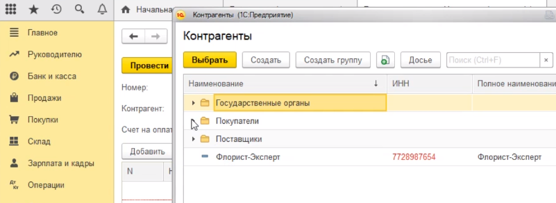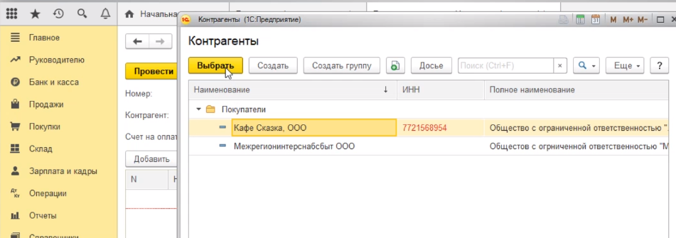 Далее выбираем контрагента, которому мы осуществляем реализацию. Нажимаем на кнопочку показать все.
