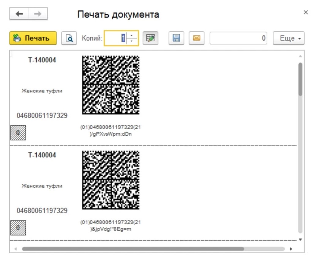 - Можно выбрать массовую печать штрихкодов с последующим нанесением на упаковки. Предварительно убираются лишние штрихкоды.