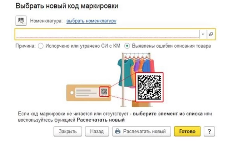 Повторное нанесение средств идентификации подразумевает указания различных сведений о товаре, причем и устаревших и новых. Нужно казать причину повторной маркировки и номенклатуру. Поэтому при помощи сканера нужно сначала считать старую, а потом и новую марку.