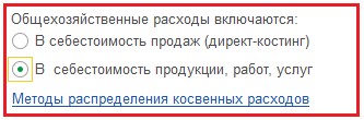 Помните о том, что косвенные расходы на счете 25 принято относить к себестоимости продукции. Для этого используется метод распределения. При этом, если вы поставили галочку, что сумма с 26 счета тоже входит в себестоимость, то и этот счет будет подлежать распределению. Для этого нажмите на ссылке «Методы распределения косвенных расходов», произведите там настройку.