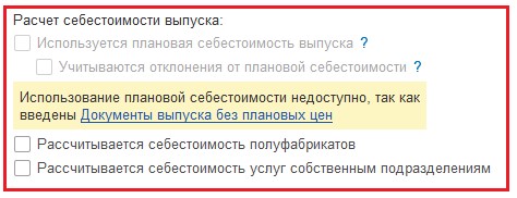 Важно учитывать, что конкретно производит и реализует ваша организация. Если же на продажу идет не только готовый продукт, но также полуфабрикаты, всегда нужно будет рассчитывать их себестоимость. При этом обратите внимание на то, чтобы стоял флажок на пункте «Рассчитывается себестоимость полуфабрикатов», иначе процедура не будет совершаться в автоматическом режиме.