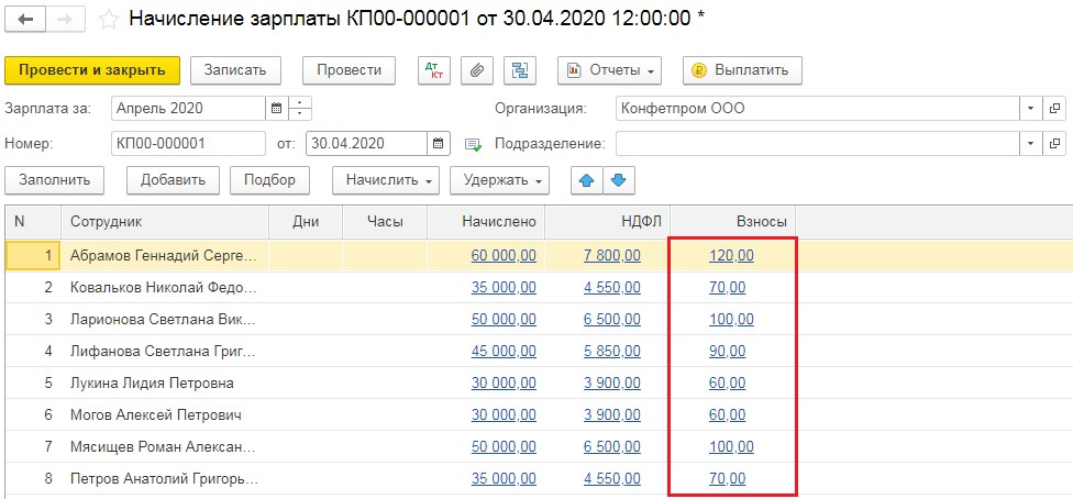 После того, как настройки программы по тарифу страхвзносов были изменены, нужно пересчитать зарплату за апрель и май (если изменения внесены в июне).