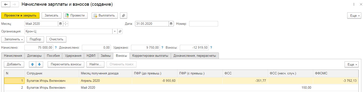 Важно! Данные действия нужно провести в отношении и апрельского, и майского начисления зарплаты.