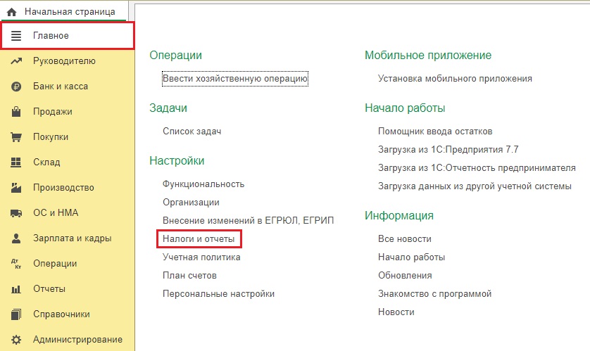 • выбрать вкладку "Налоги и отчеты";
