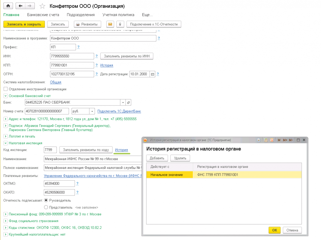 Карточка каждой организации в 1С содержит раздел "Налоговая инспекция", где расположены реквизиты ОКТМО, а также все остальные реквизиты для ИФНС.