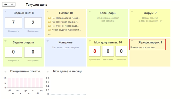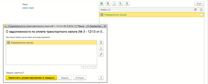Закончить редактирование или продолжить работу с занятыми документами можно прямо из окна виджета.
