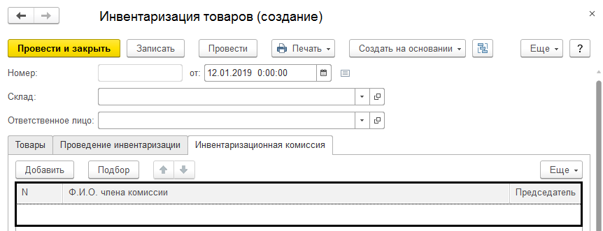 Необходимо знать, при формировании печатной формы существуют специальные закладки для внесения данных. На рисунке №5 представлен пример: при открытии вкладки «Инвентаризационная комиссия» требуется внести информацию о членах комиссии.