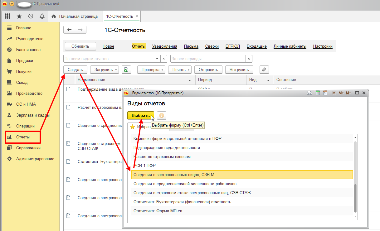 Подготовка и отправка СЗВ-М из 1С:Бухгалтерии 3.0