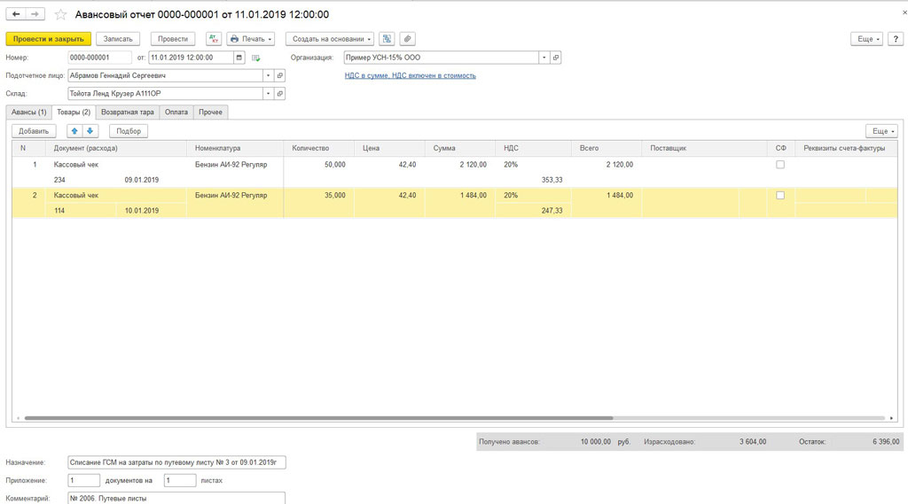 Бухгалтерской службой компании, чаще всего, производится контроль заполнения документа, расчет ГСМ по нормам расхода, исходя из записанного километража в бланке, отражение в 1С поступления и списания ГСМ, а еще, при потребности, расчет зарплаты водителя по путевому листку.
