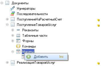 Находим подраздел «Макеты» и щелкаем по нему правой кнопкой мыши, нажимаем «добавить».