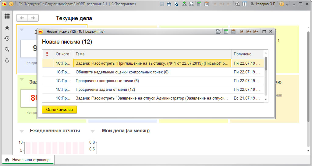 Пользователь, который получит документ, сможет увидеть его в новых письмах. Для этого ему нужно открыть программу под именем пользователя, кому мы отправили документ.