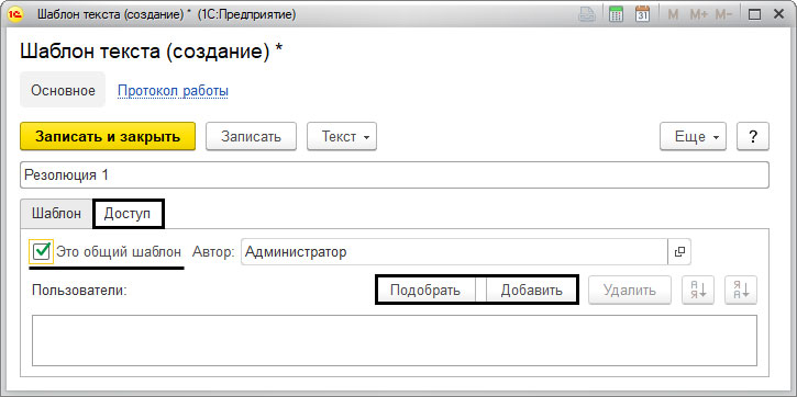 На закладке "Доступ", у вас появиться возможность выбрать пользователей, которые смогут использовать ваши шаблоны. Также, есть общий шаблон.