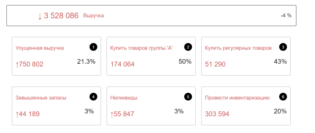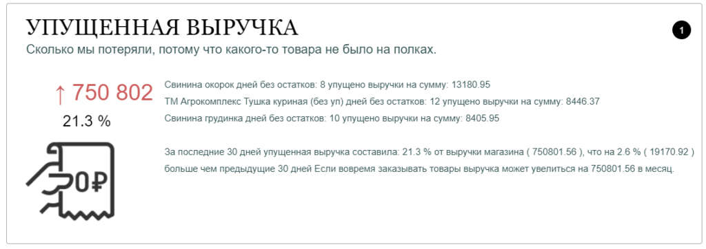 Разочаровывающая цифра. Наш потенциальный покупатель не нашел на полках магазина нужный товар и унес свои деньги более шустрому конкуренту.