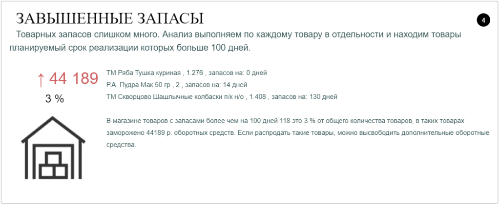 Такая подачи информации призвана экономить время предпринимателю. Современный бизнесмен действует в постоянном дефиците времени, и на самостоятельное проведение анализа большой массы цифр времени катастрофически не хватает.