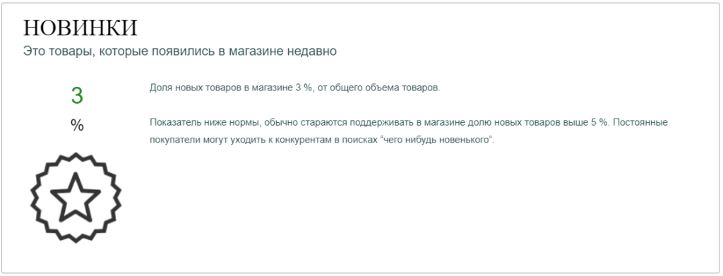 1С:Ритейл дает полезный совет, к которому желательно прислушаться. Появление в ассортименте магазина новинок привлечет внимание покупателей, и увеличит спрос на товары. Регулярно вводить пять процентов нового товара от общего объема - хороший способ увеличить интерес потенциальных покупателей и увеличить выручку.
