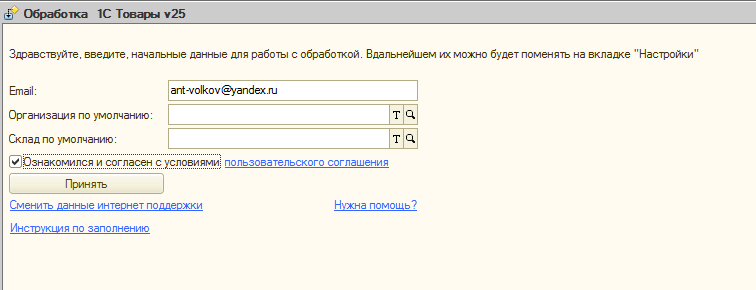 • заполнить необходимую информацию для корректной работы программы.