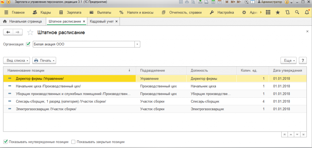 Работа в программе ЗУП с должностями