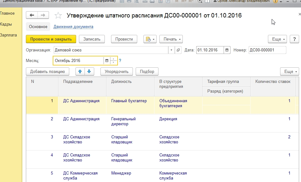 3. Производится привязка одного либо нескольких сотрудников к позициям, относящимся к штатному расписанию. Данный вариант можно признать оптимальным для использования государственными учреждениями и крупными компаниями/предприятиями/организациями.