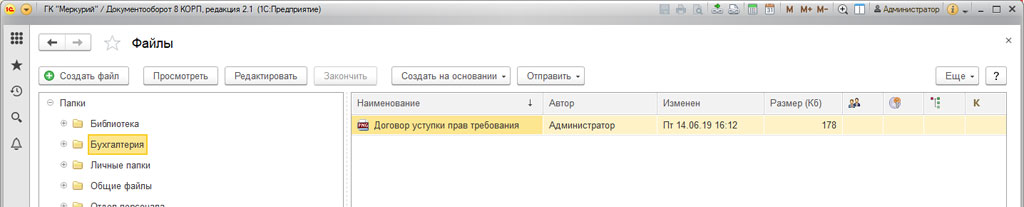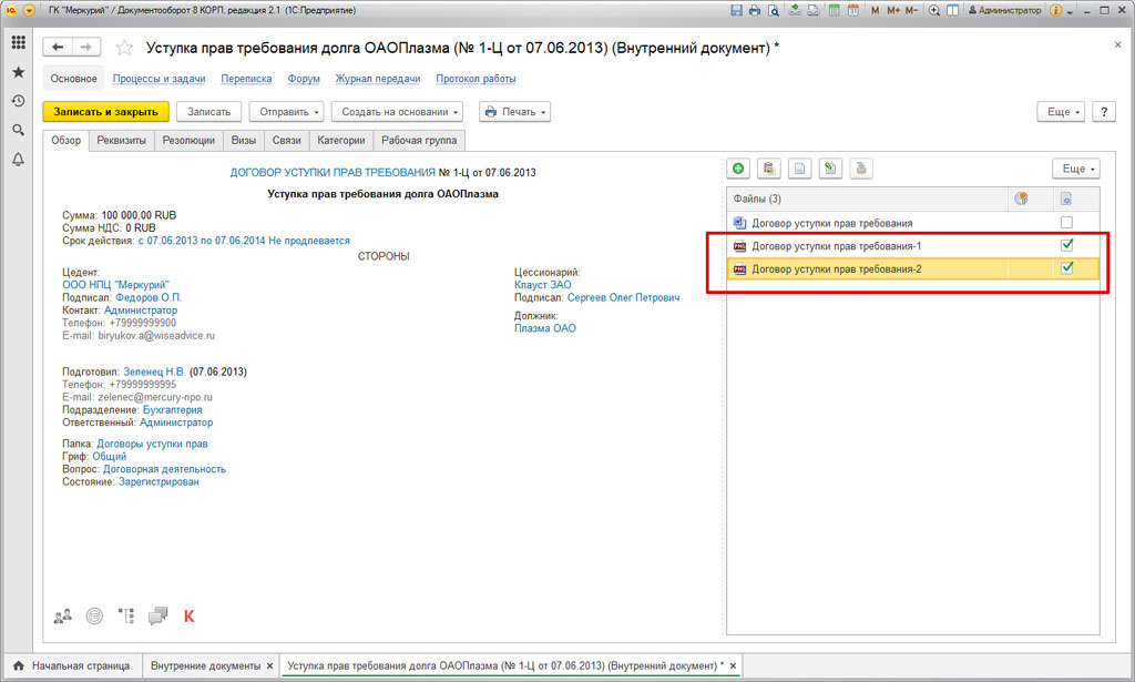 В данном примере отсканированные файлы система прикрепила к карточке договора.