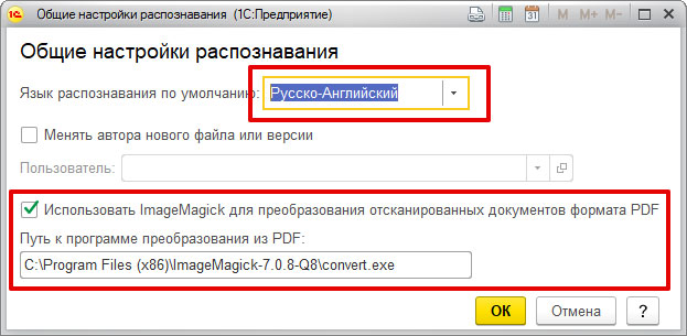 Утилита CuneiForm позволяет системе распознавать графические файлы. Если используется файловый вариант системы 1С:Документооборот, надо указать того пользователя, который будет с ней работать. Если используется клиент-серверный вариант, следует указать пользователя, под чьим именем осуществляется работа сервиса 1С:Предприятие.