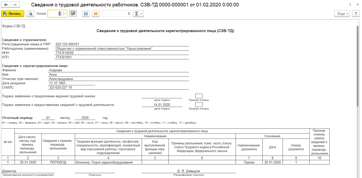 СЗВ-ТД и СТД-Р в 1С: Зарплата и управление персоналом 8