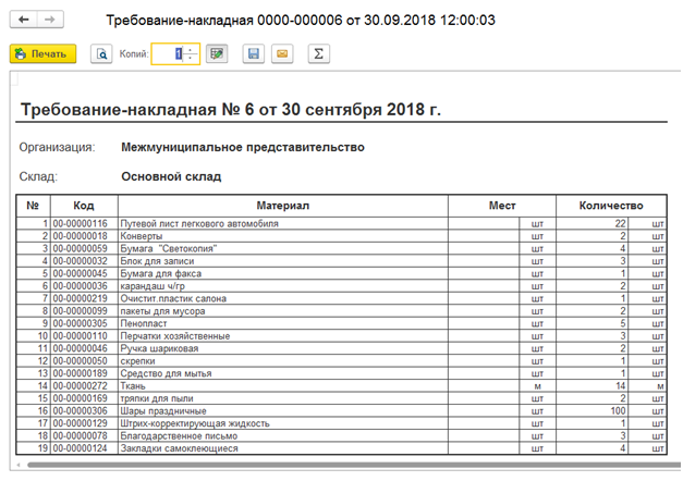 Таким образом, документ «Требование-накладная» выступает в качестве универсального документа как для списания, так и для передачи материалов.