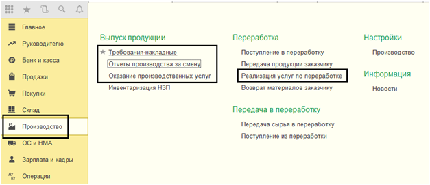 В качестве примера рассмотрим процесс создания «Требование-накладной» на основании «Отчёта производства за смену».