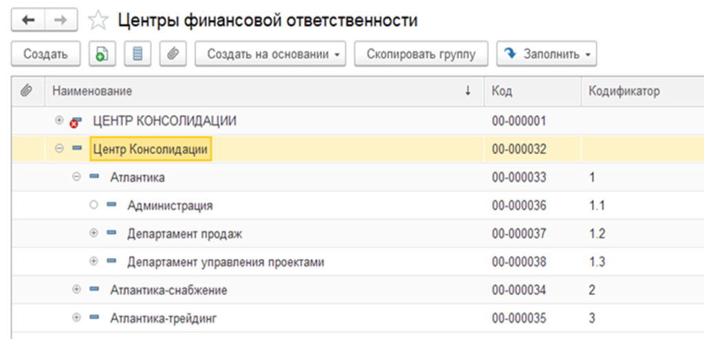 • создают основу для управленческого учета и бюджетирования, где каждый ЦФО планирует и исполняет свой бюджет;