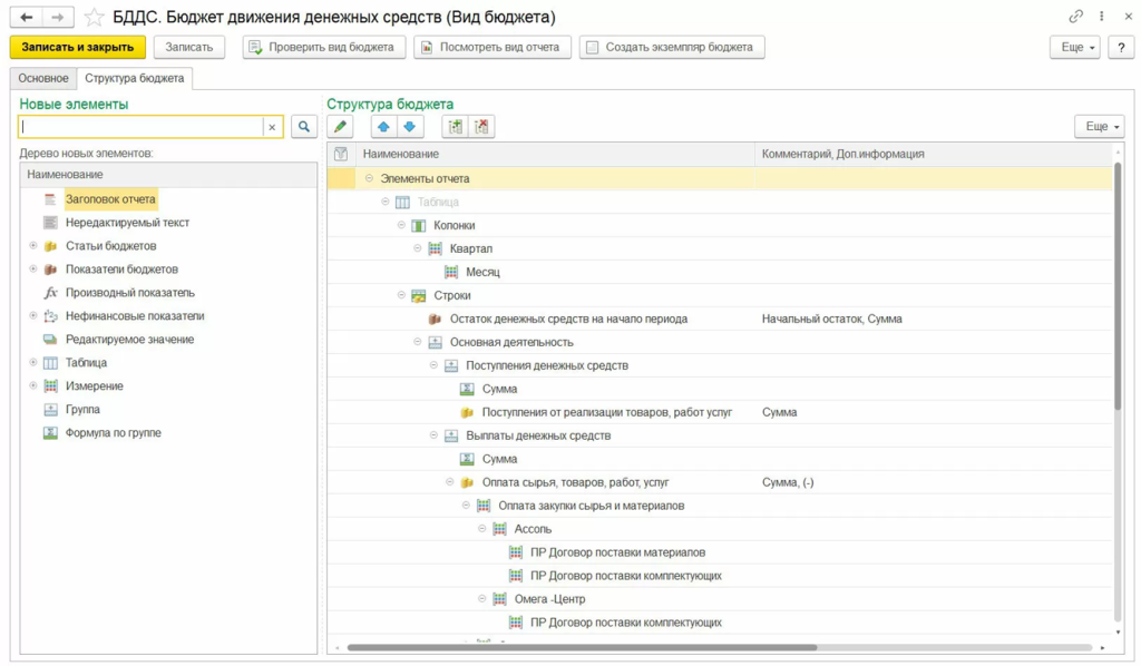 Форма настроек вида бюджета в информационной базе 1С:ERP