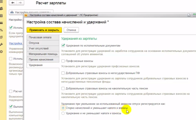 Как настроить удержание при увольнении за использованный авансом отпуск в 1С:ЗУП ред.3
