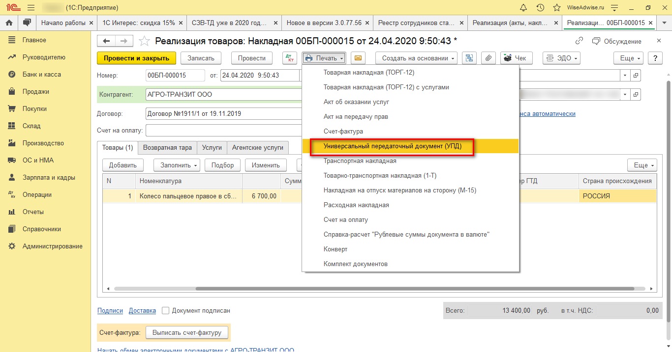 Теперь можно воспользоваться печатным форматом УПД.