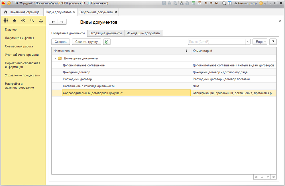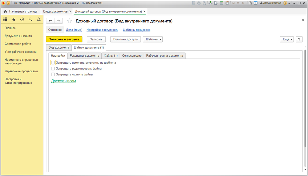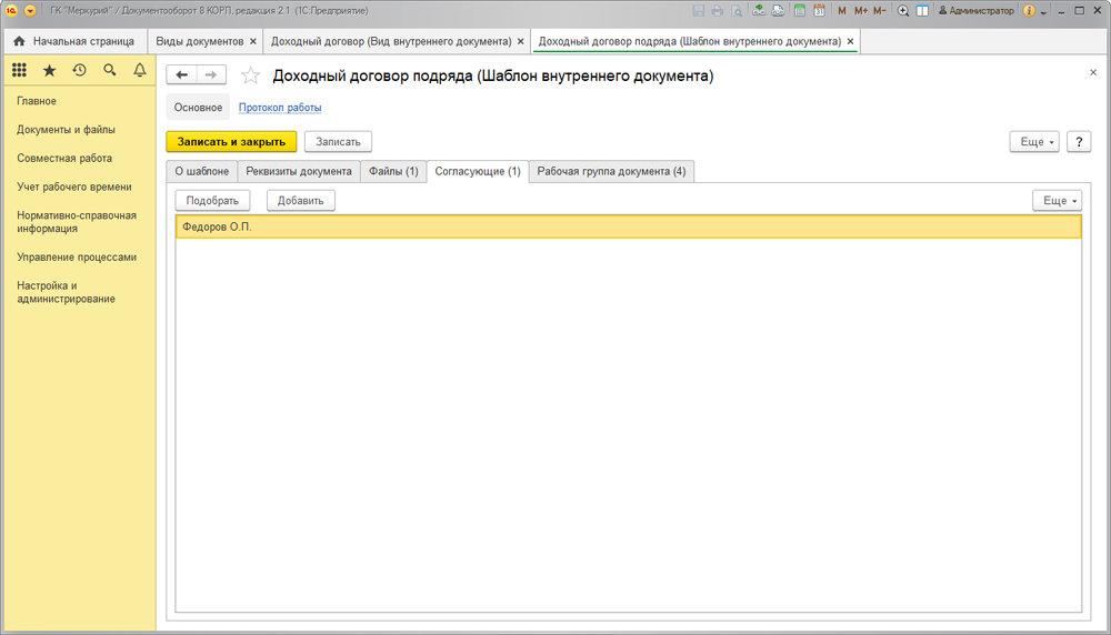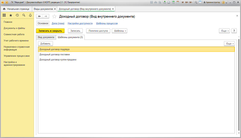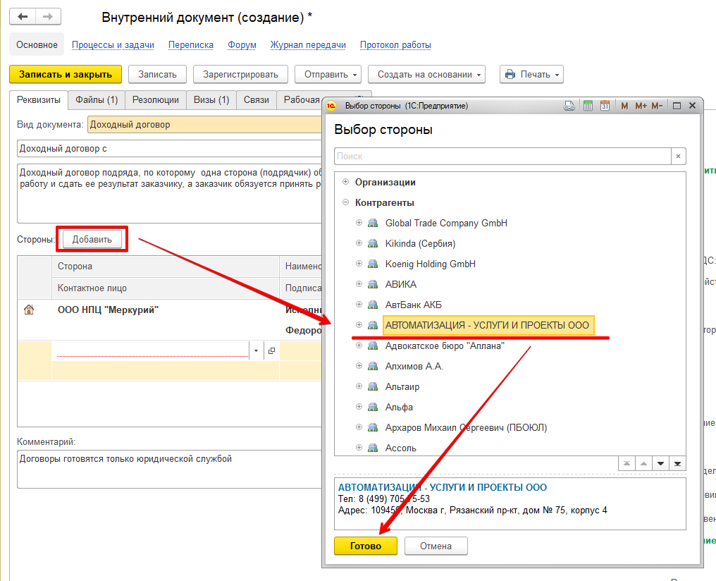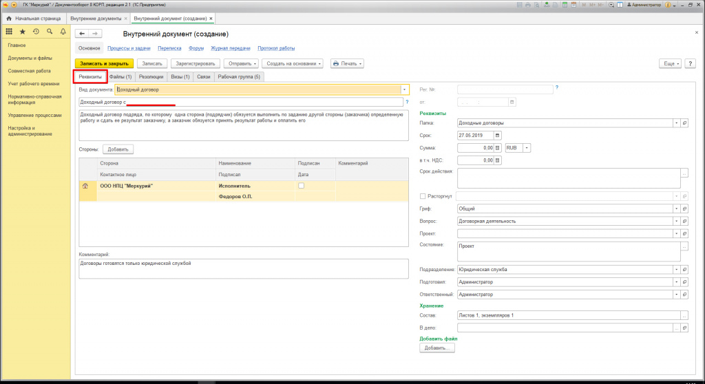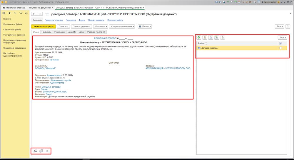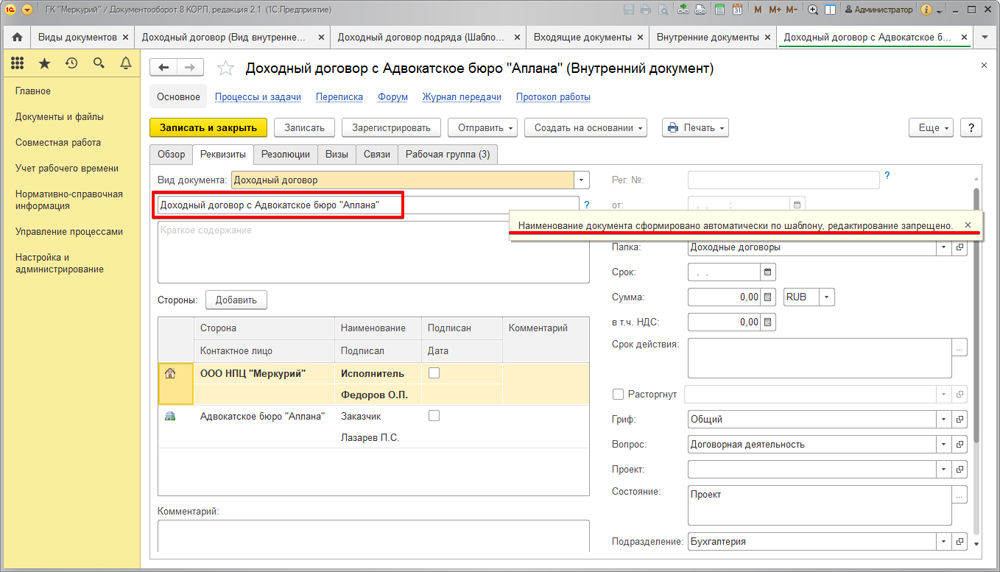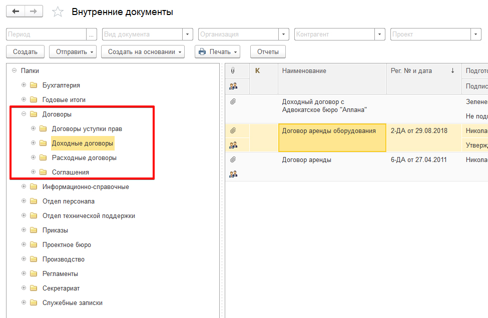 Управление договорами в 1С Документооборот
