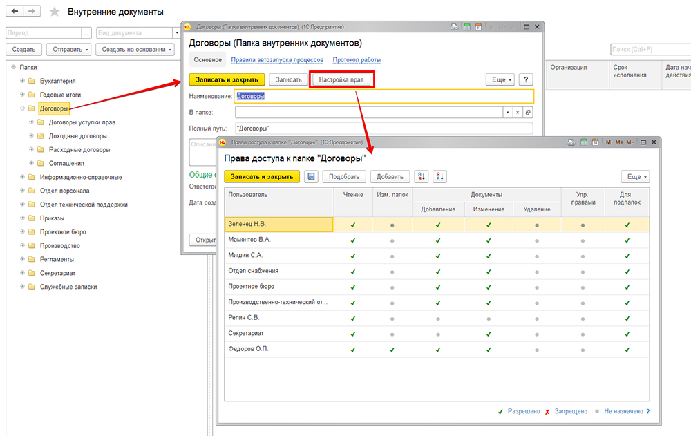 На этапе формирования такого дерева папок необходимо задать права доступа к каждой папке для сотрудников вашего предприятия.