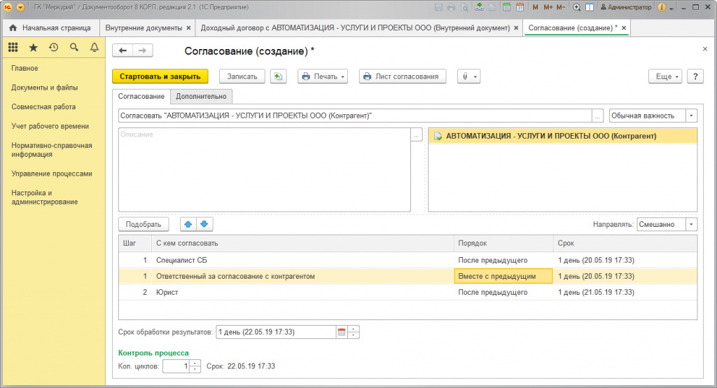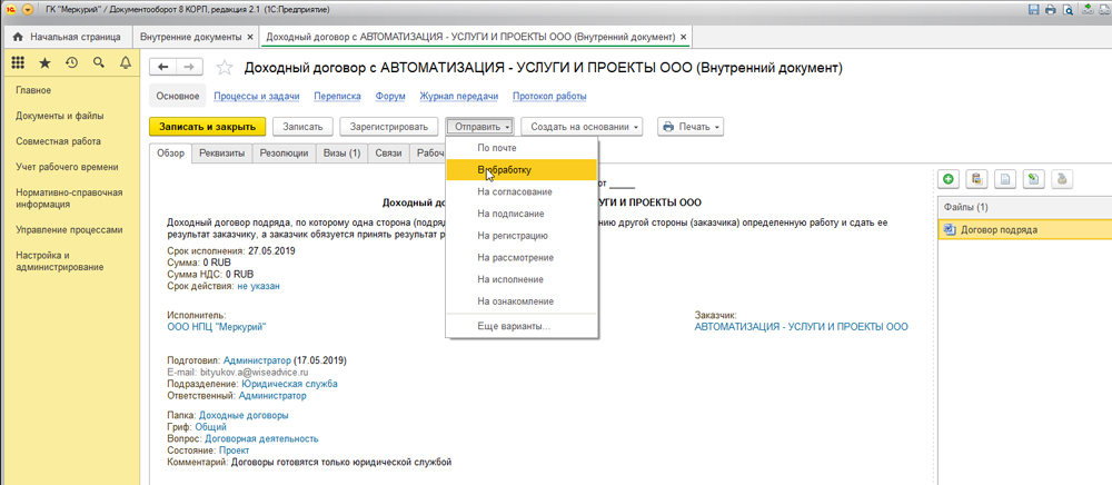Обработка договоров с помощью «1С:Документооборот»