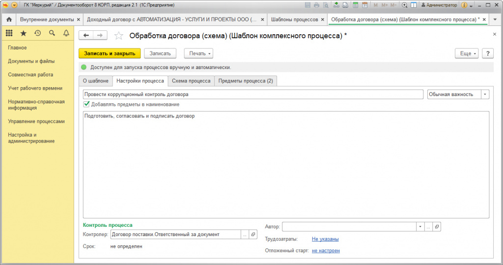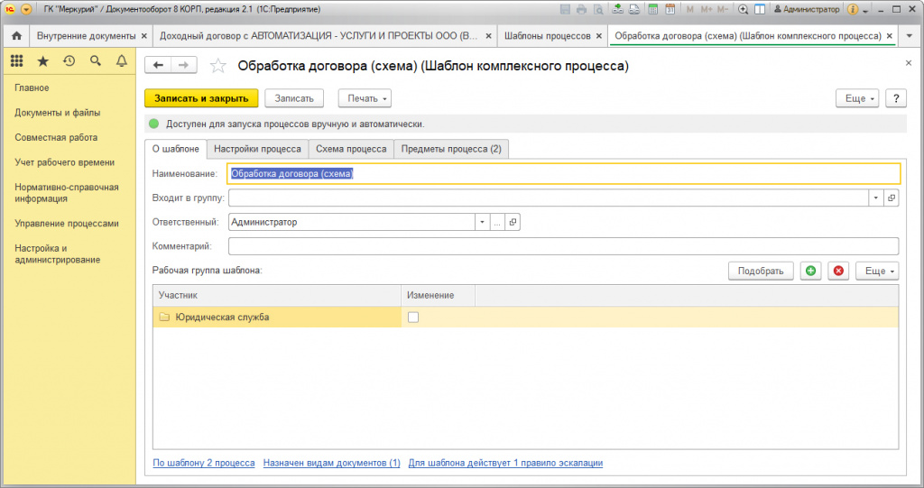 Обработка договора: бизнес-процесс и подготовка шаблона