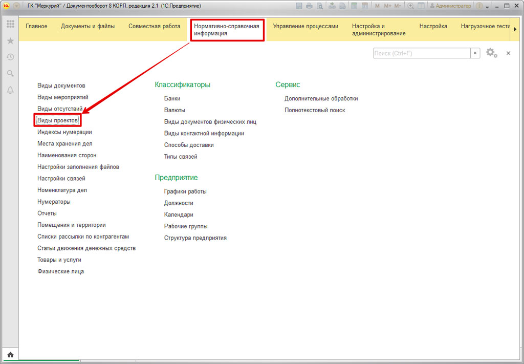 Для того, чтобы настроить вид проекта, достаточно выбрать раздел «Нормативно-справочная информация».