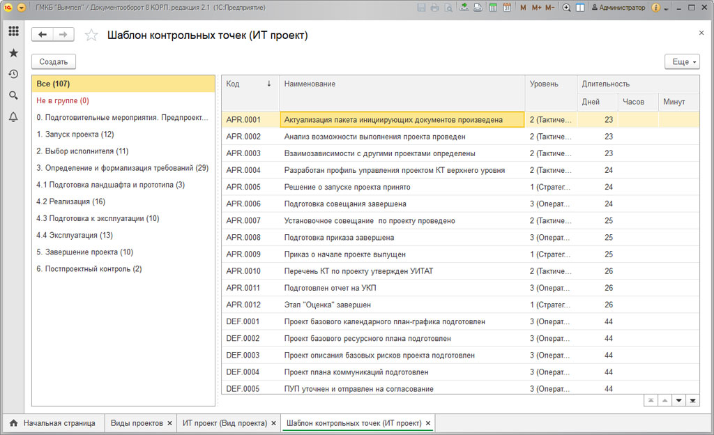 Все шаблоны контрольных точек разделяются по группам. Как только они будут использованы в проекте – шаблон автоматически перенесется.